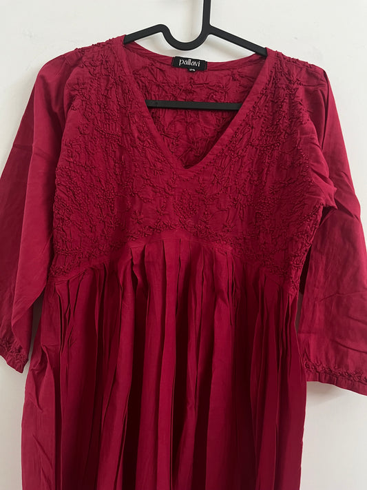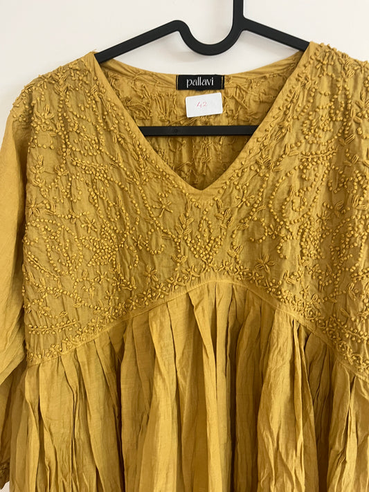 Expertly handcrafted in India for you, Aliya Cut Kurti/Dress stands out in its elegant simplicity. It has intricate French knot handwork and this piece is a true work of art. Perfect for anyone looking for a unique and beautiful addition to their wardrobe.