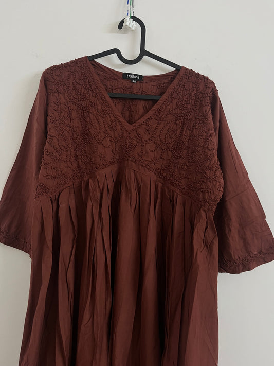 Aliya Cut Dress PRE-ORDER - Coffee brown (with work on front and back)