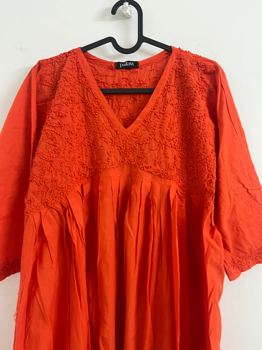 Aliya Cut Kurti/Dress PRE-ORDER - Rust Orange ( with work on front and back)