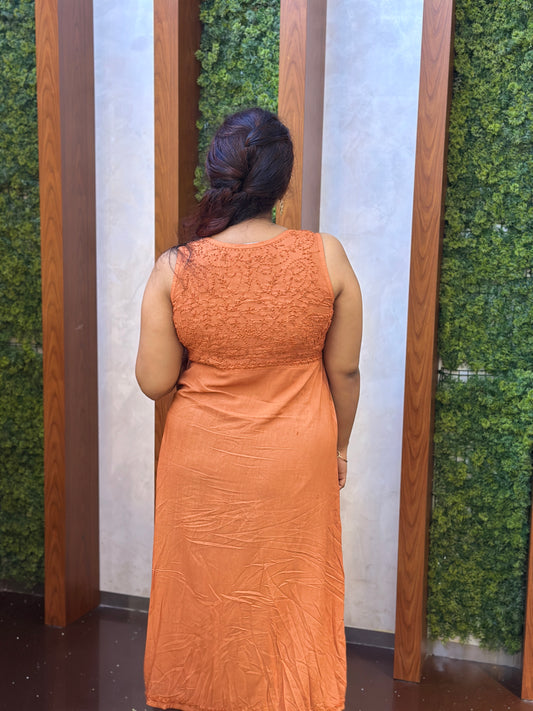 Sleeveless Aliya cut dress (with work on front and back) PRE-ORDER - Rust Orange