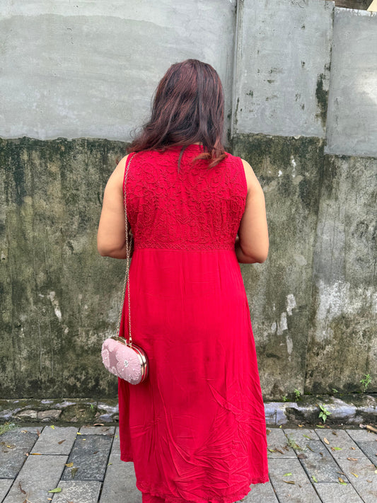Sleeveless Aliya cut dress (with work on front and back) PRE-ORDER - Red