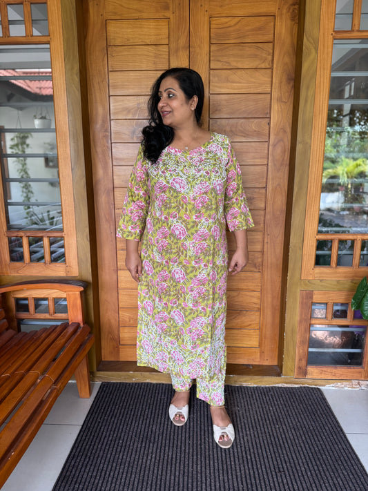 Straight Kurti and pant PRE-ORDER - Lime Yellow