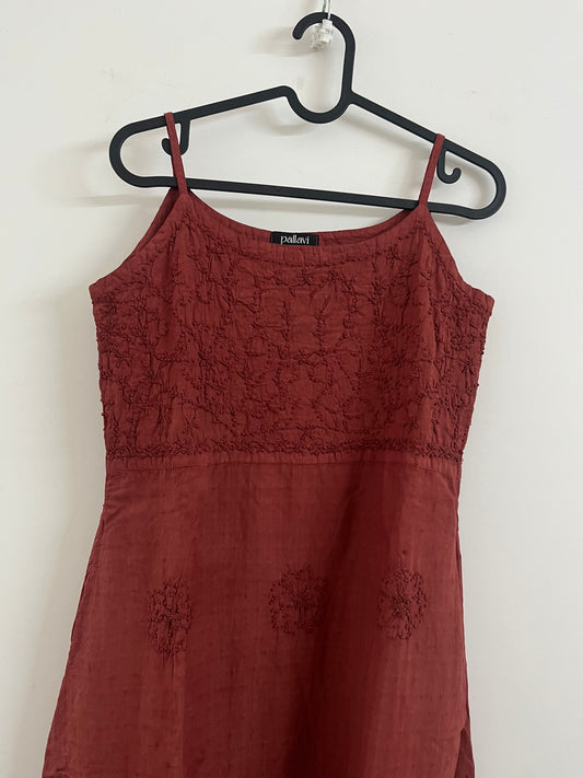 Pleated dress PRE-ORDER -Black knots on Dark Chikku