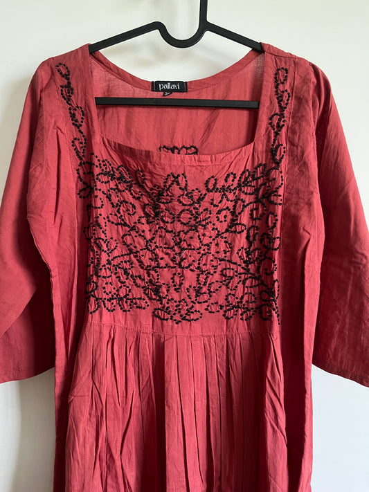 Pleated dress PRE-ORDER -Black knots on Pastel Red