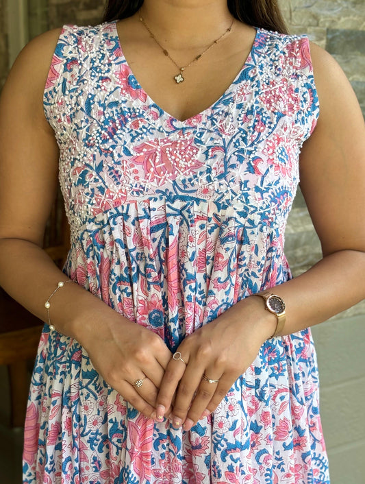 Sleeveless Aliya cut dress (with work on front and back) and pant PRE-ORDER - Bluebelle