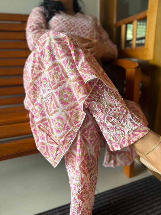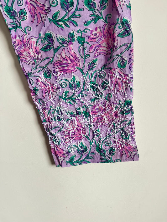 Expertly handcrafted in India for you, this Straight Pants stands out in its elegant simplicity and pockets on both sides. They are designed with intricate French knot handwork at the bottom of the pants. Perfect for anyone looking for a unique and beautiful addition to their wardrobe.