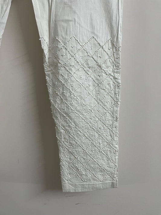 Expertly handcrafted in India for you, these white dyeable collection stands out in its elegant simplicity. They are adorned with intricate French knot handwork, and is perfect for anyone looking for a unique and beautiful addition to their wardrobe.