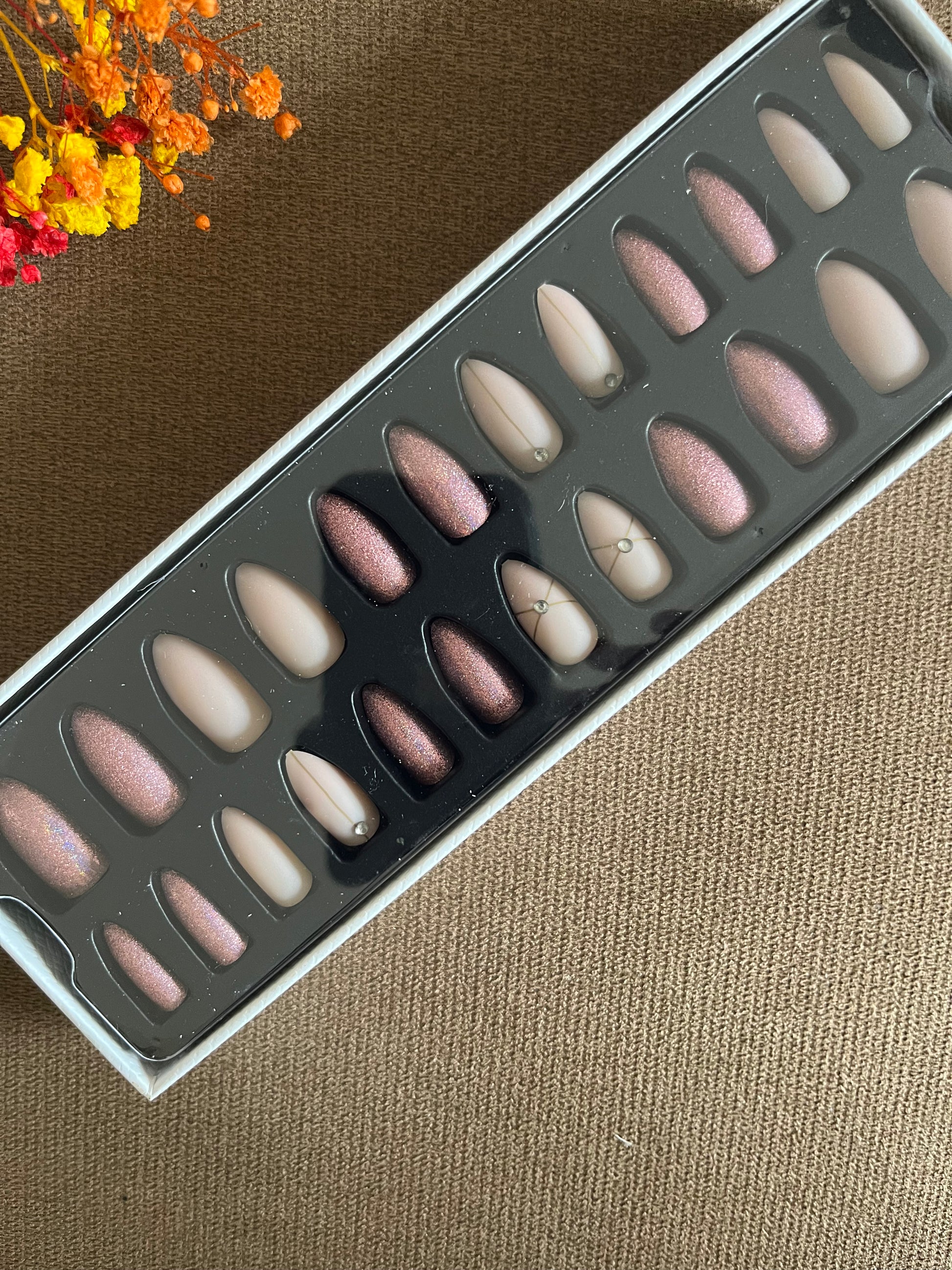 Use nail tabs or nail glue — your choice for that flawless finish. no mess — just instant elegance !!