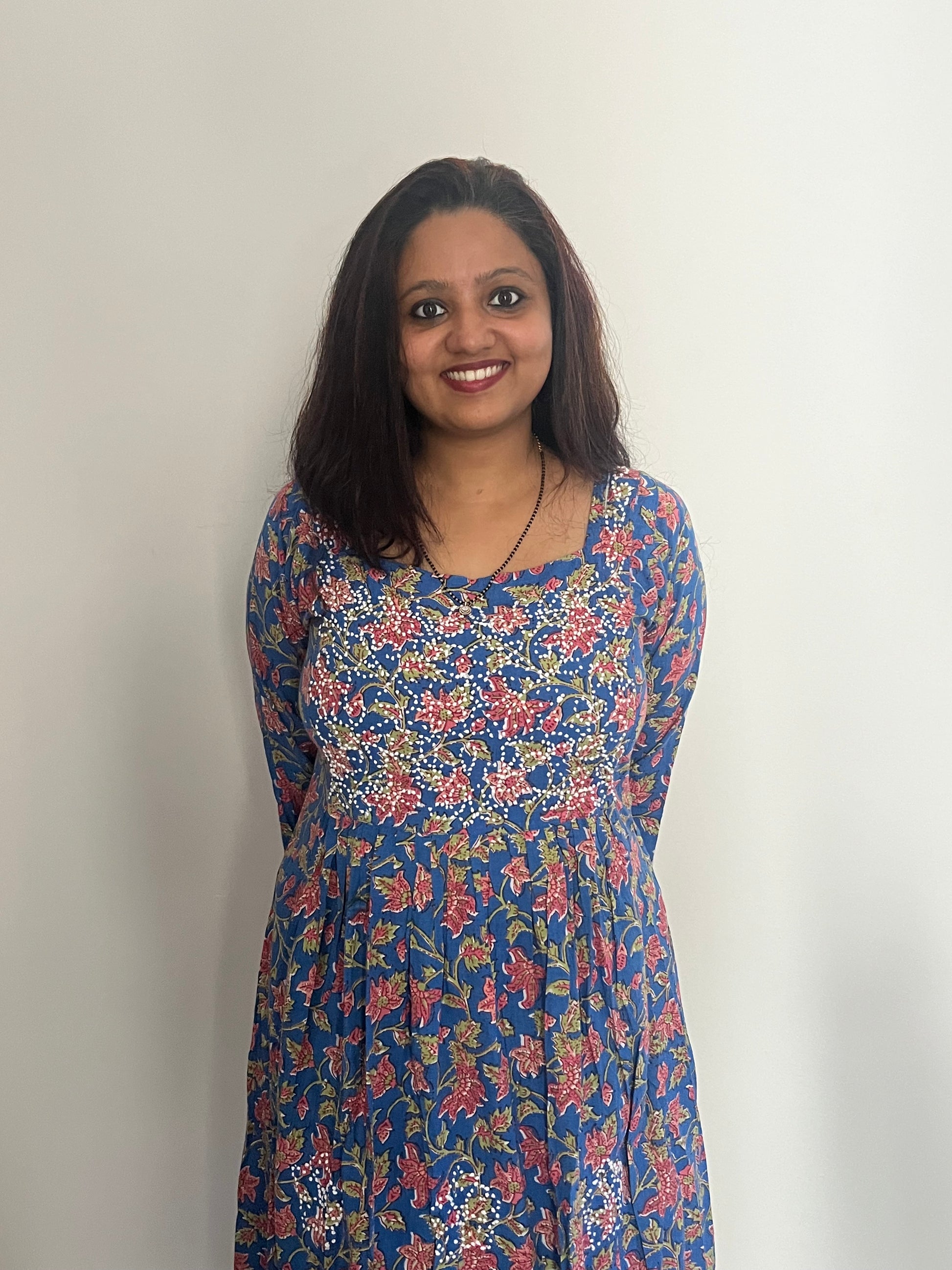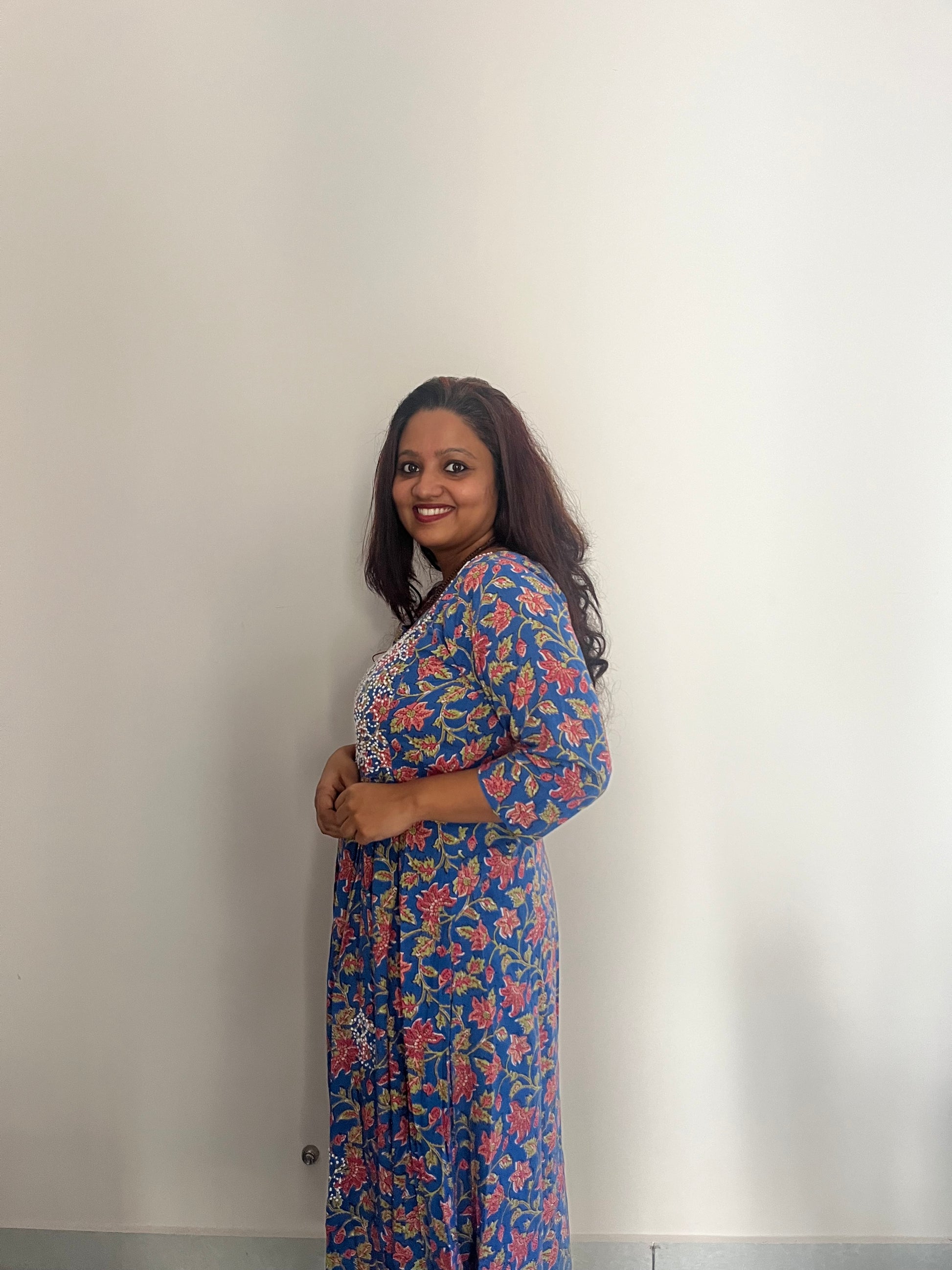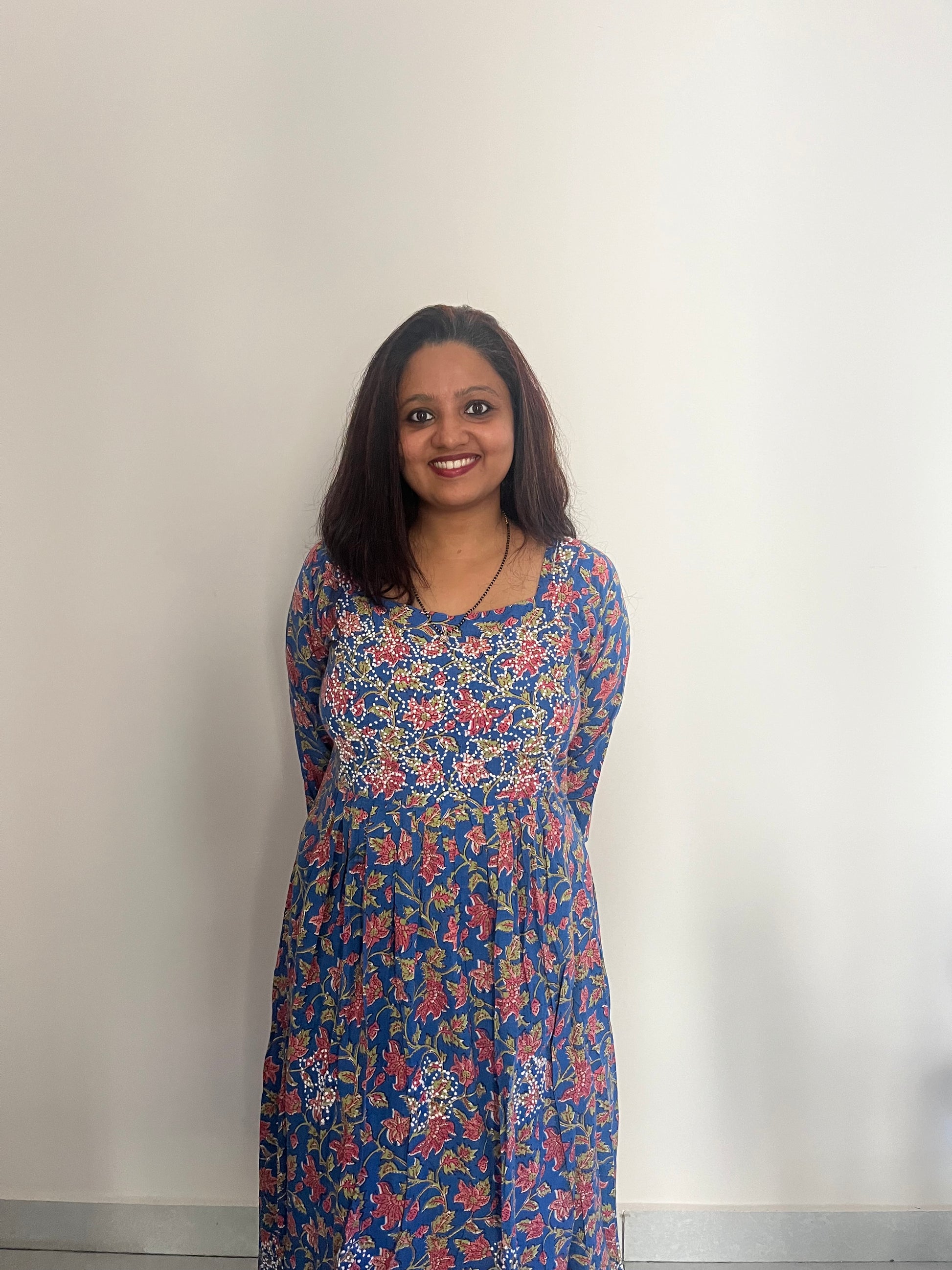 Expertly handcrafted in India for you, this Pleated Dress (pleats only on front portion of the dress) stands out in its elegant simplicity.. Made of Jaipur block printed cotton and adorned with intricate French knot handwork, this piece is a true work of art. Perfect for anyone looking for a unique and beautiful addition to their wardrobe.