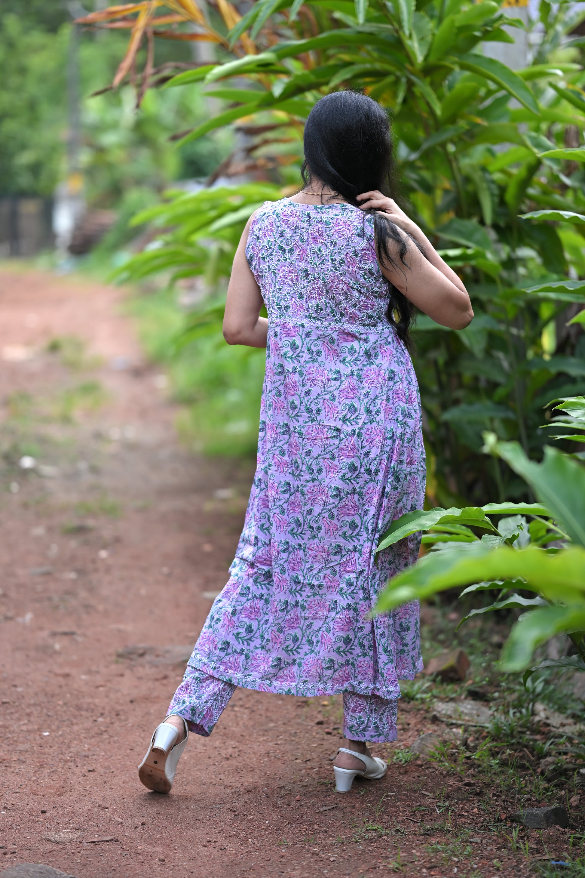Sleeveless Aliya cut dress (with work on front and back) and pant PRE-ORDER - Lavender Smera