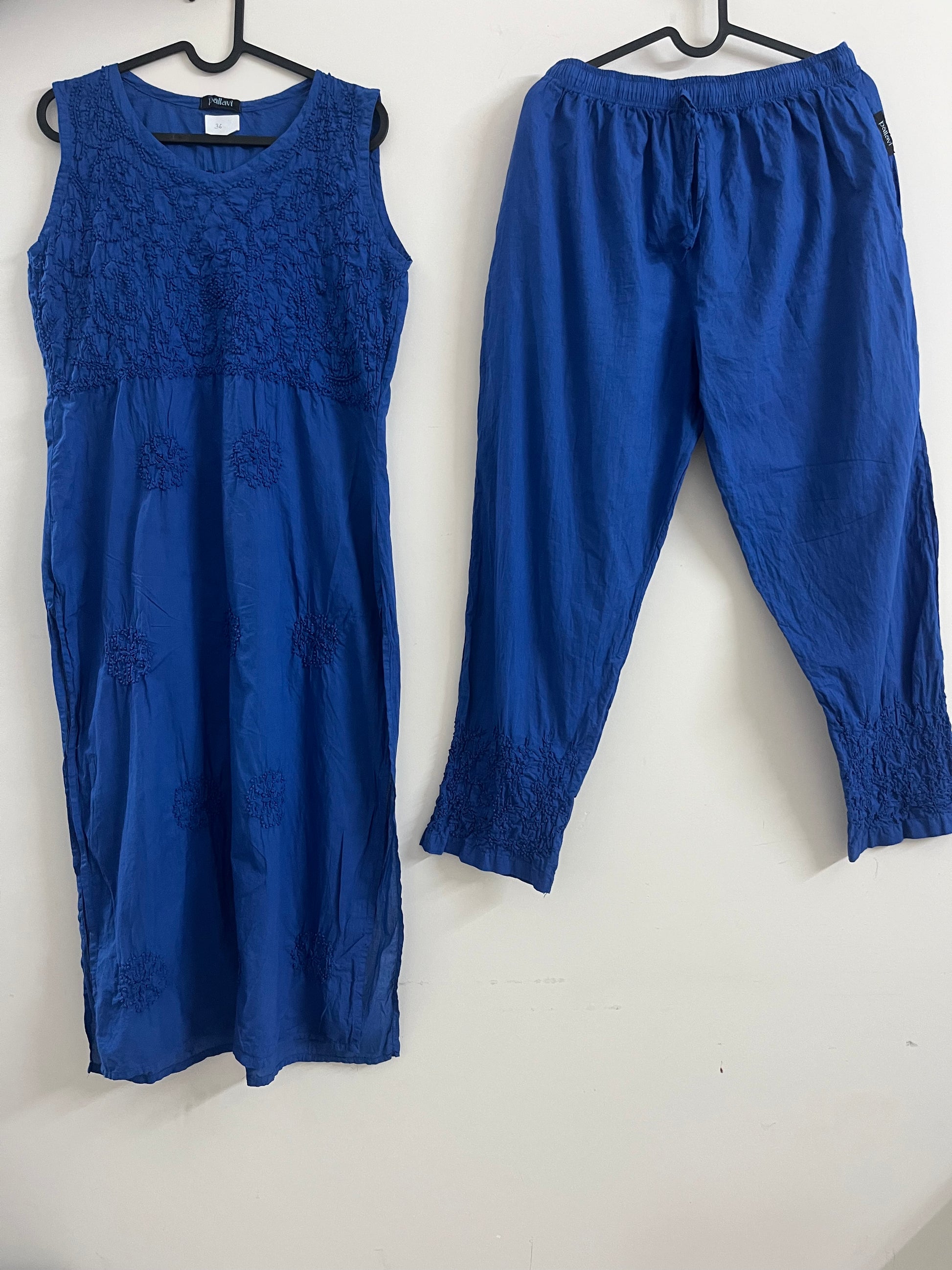 Sleeveless Straight Kurti and Pant (co-ord set) PRE-ORDER - Royal blue