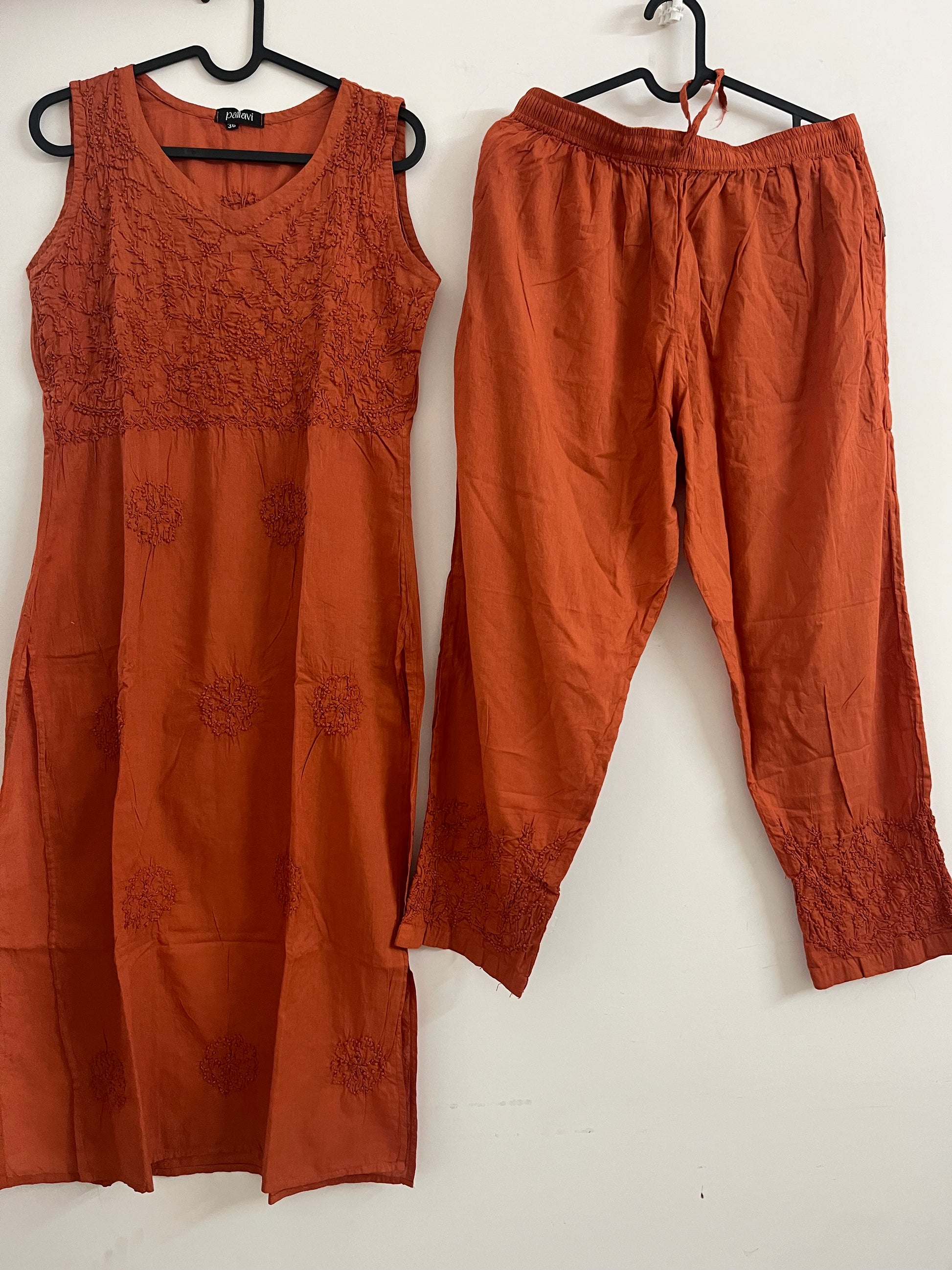 Sleeveless Straight Kurti and Pant (co-ord set) PRE-ORDER - Rust Orange