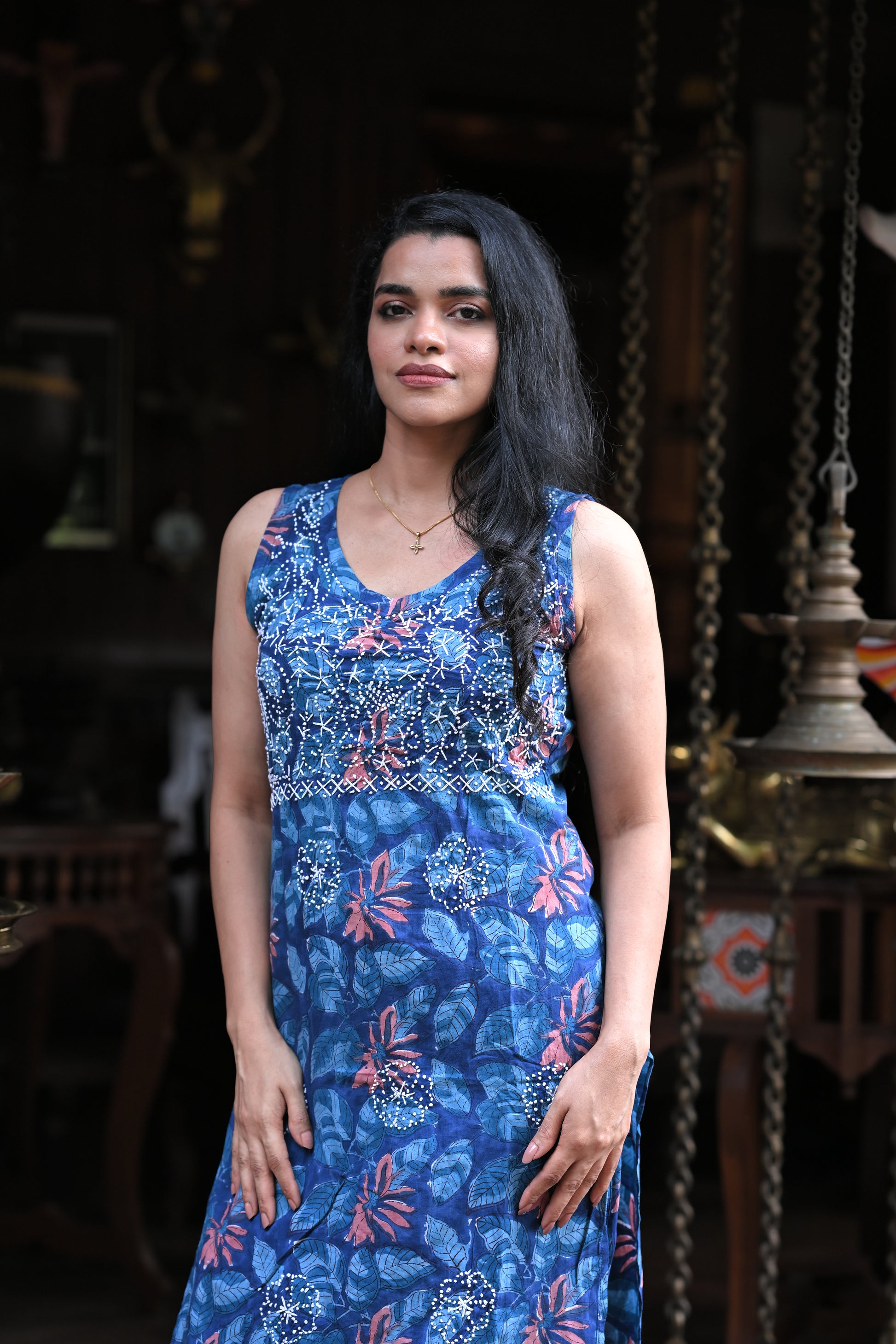 Expertly handcrafted in India for you, this sleeveless Straight kurti with slits on both sides stands out in its elegant simplicity. Made of Jaipur block printed cotton and adorned with intricate French knot handwork, this piece is a true work of art. Perfect for anyone looking for a unique and beautiful addition to their wardrobe.